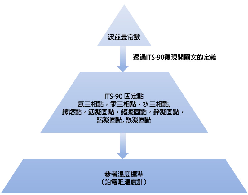下圖說明了開爾文定義的溯源性鏈。